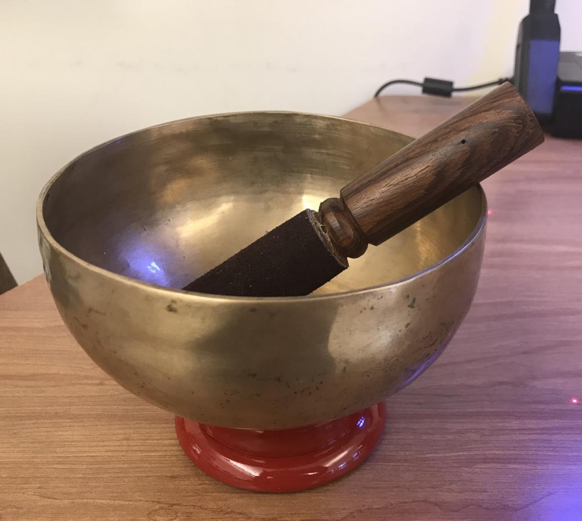Have fun with the above practices. Experiment using a Tibetan singing bowl (below) for mindful listening illustrated at the beginning of this post. Concentrating on the sound of the bowl, especially the pulses of sound as they become quieter and quieter, is a great way to bring the mind into focus. Students are also motivated to lead a mindfulness practice when they learn they have an opportunity to ring the bowl.