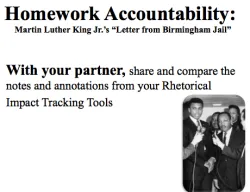 Students engage with King’s text as a persuasive essay, continuing to build skills for close reading and rhetorical analysis as well as developing their ability to identify and evaluate the claims an author uses in support of his argument. At the same time, students work to strengthen their analytical skills through written assessments and collaborative discussions in which they learn to articulate and support their ideas using textual evidence. By examining the text alongside three poems, students begin to consider how these different texts develop common central ideas about human rights.